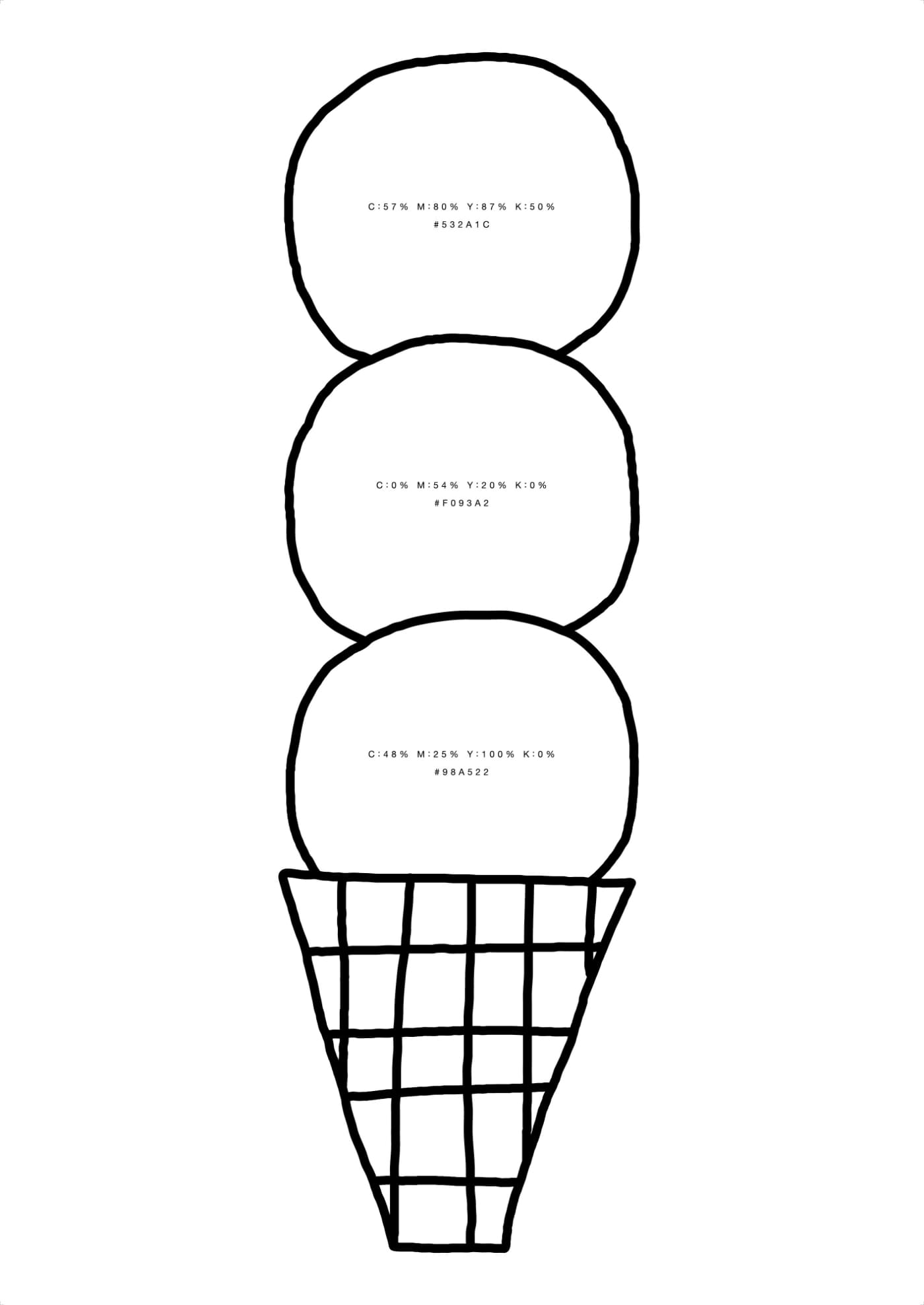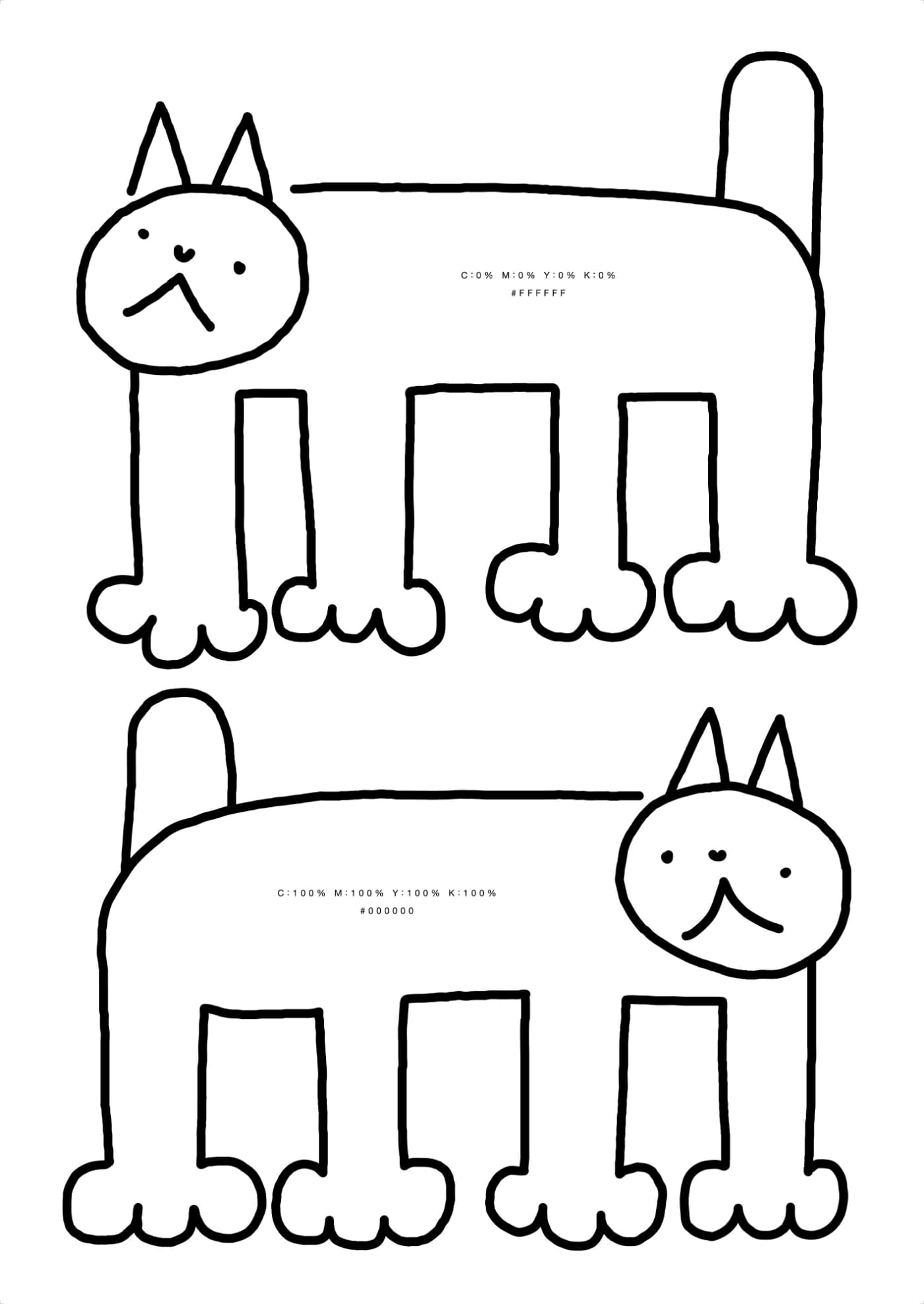 2024年開催の個展で発表した作品。それぞれのイラストに記載されたCMYKの数値を読み解くと、カラフルなイラストが見えてくる。